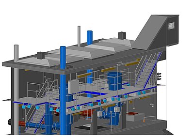 Von August bis September dieses Jahres haben wir das komplette Aufmaß des Pumpwerks in Wanzleben realisiert. Anschließend waren wir mit der Auswertung und Darstellung der kompletten ßrtlichkeit, d. h. Gebäude, Rohre, Kabel, also alles was im Bauwerk vorhanden ist, beauftragt. Hier kam das Programm AutoCAD Architecture zum Einsatz. Die fertigen Datensätze wurden nun an ein großes Leipziger Ingenieurbüro übergeben, welches die weitere Planung des anstehenden Umbaus des Pumpwerks übernimmt.